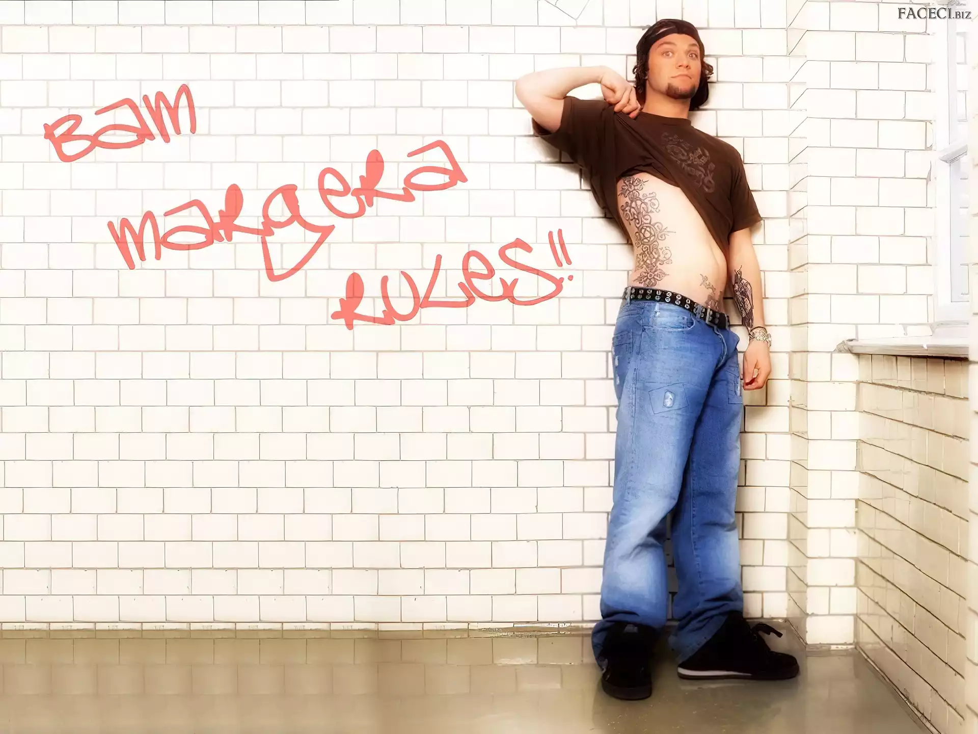 okulary, Bam Margera, twarze t-shirt, Bam Margera, brązowy okulary, Bam Margera, butelka włosy, Bam Margera, ciemne zegarek, Bam Margera, deskorolka kurtka, Bam Margera, rozpięta